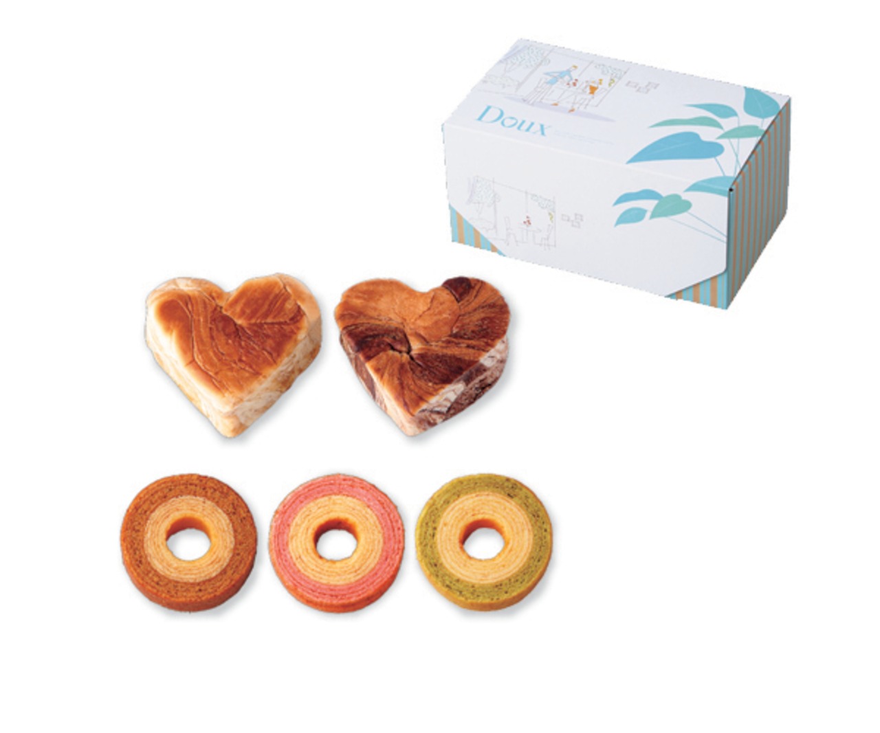 ●ハートデニッシュ(メイプル・チョコ)×各1、ミニバウムクーヘン(キャラメル&ミルク・ストロベリー&ミルク・抹茶&ミルク)×各1